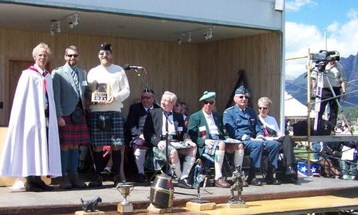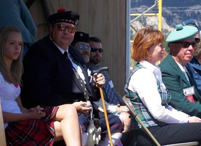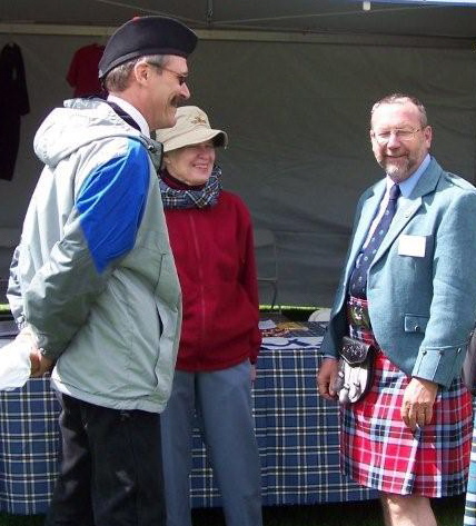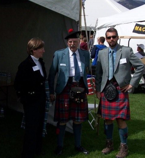 left to right Mrs. MacTavish of Dunardry - Chief's wife Patrick Thompson - Clan Seannachie Larry Thompson - CMU President