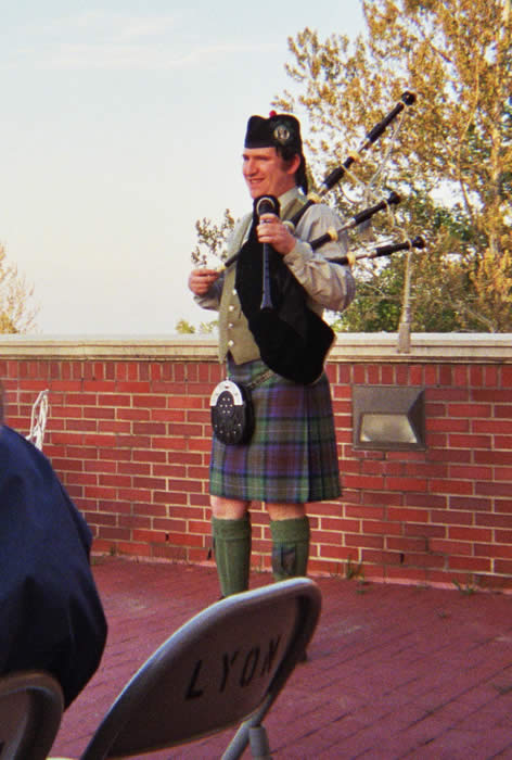 Piping on the patio at sunset. The Ozark Mts in background.